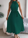 Elevate your wardrobe with the timeless beauty of the CEDRINE™ – Graceful Pleated Midi Dress. With its flowing silhouette, flattering pleats, and classic halter neckline, this dress is perfect for brunches, date nights, and every graceful moment in between.