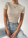 Meet your new go-to essential. The NAOMIE™ – Sleek Slim-Fit Tee hugs your curves in all the right places with a stretchy fabric that moves with you. Whether layered under a jacket or worn solo, it brings polished ease to your everyday style.