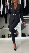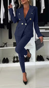 PENNIE™ - Classy Collar Blazer and Flared Pants Set