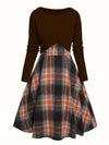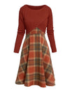 JORY™ - Vintage Round Neck Long Sleeve Crop Top and Plaid Dress