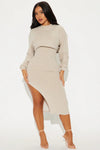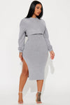 This stylish Nina set consists of a high-neck, long-sleeve top and a figure-hugging slip dress that together create a chic, layered look. The asymmetric hem and high side slit add a seductive touch, while the overlying layer provides structure and subtle coverage. Perfect for any occasion, this set effortlessly combines elegance with modern chic—ideal for customers who appreciate contemporary sophistication.